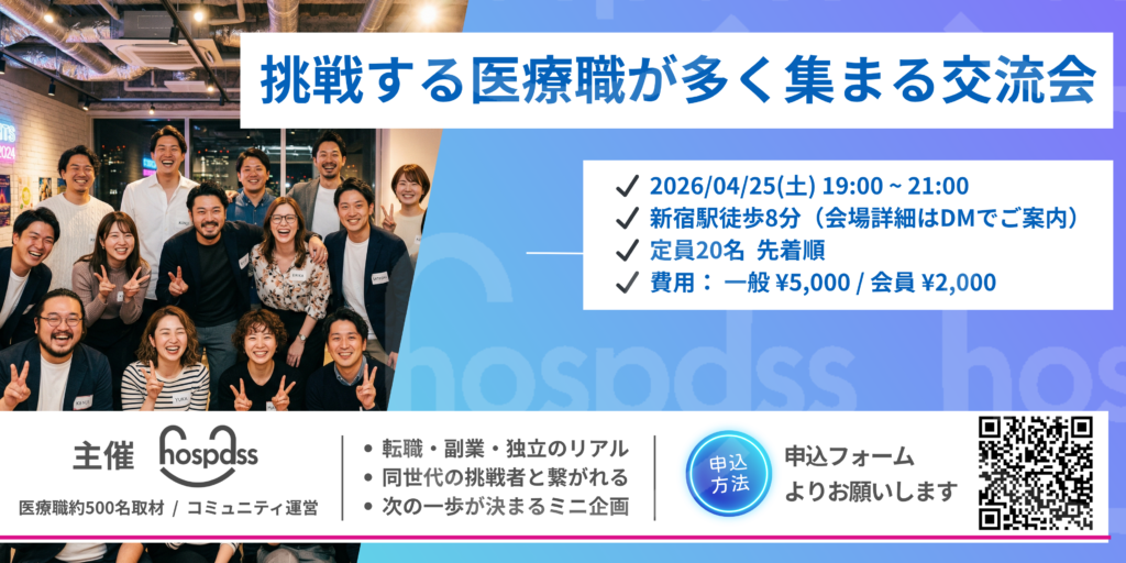 費用:5,000円(hospass有料会員:2,000円)※税抜